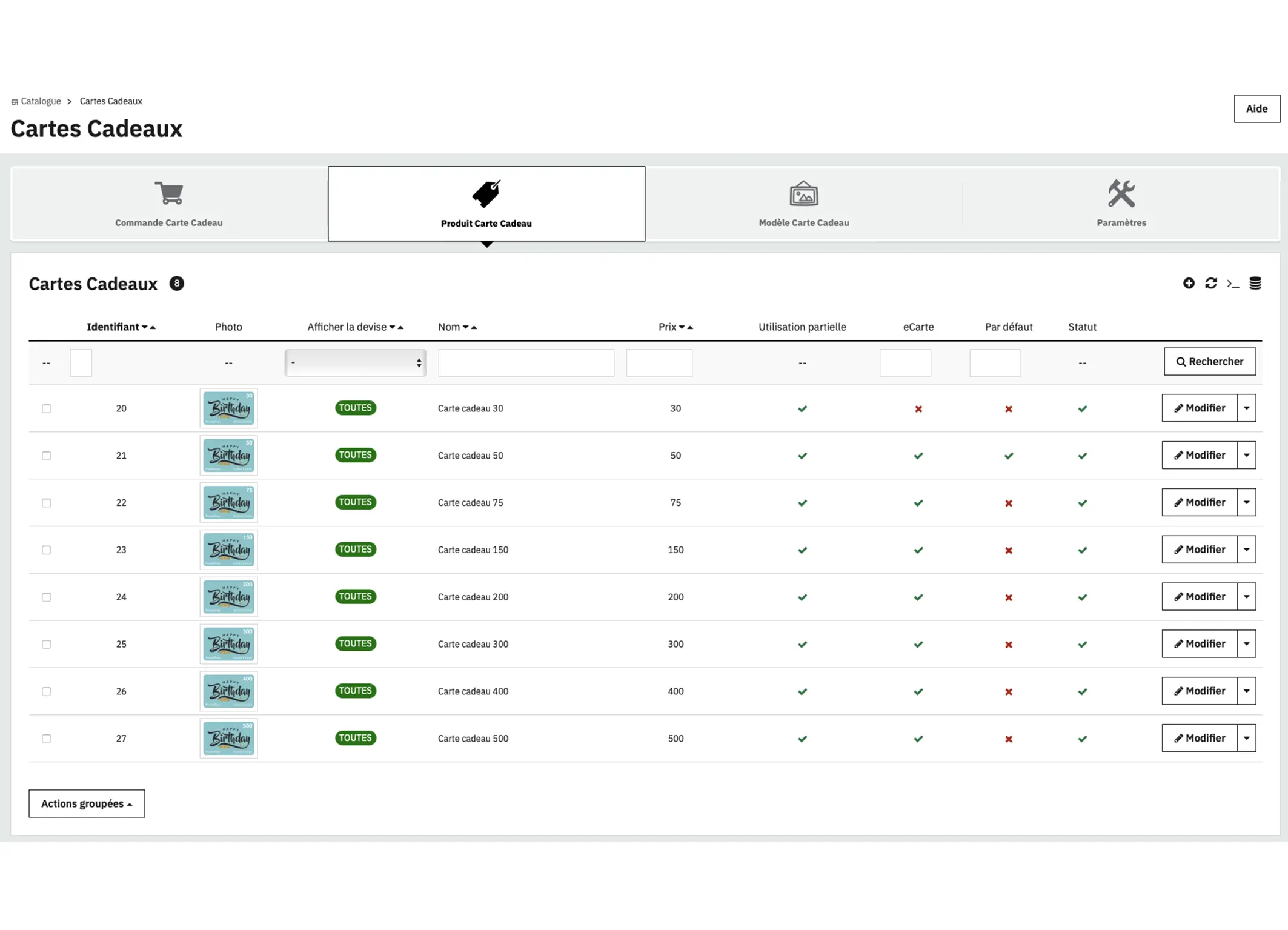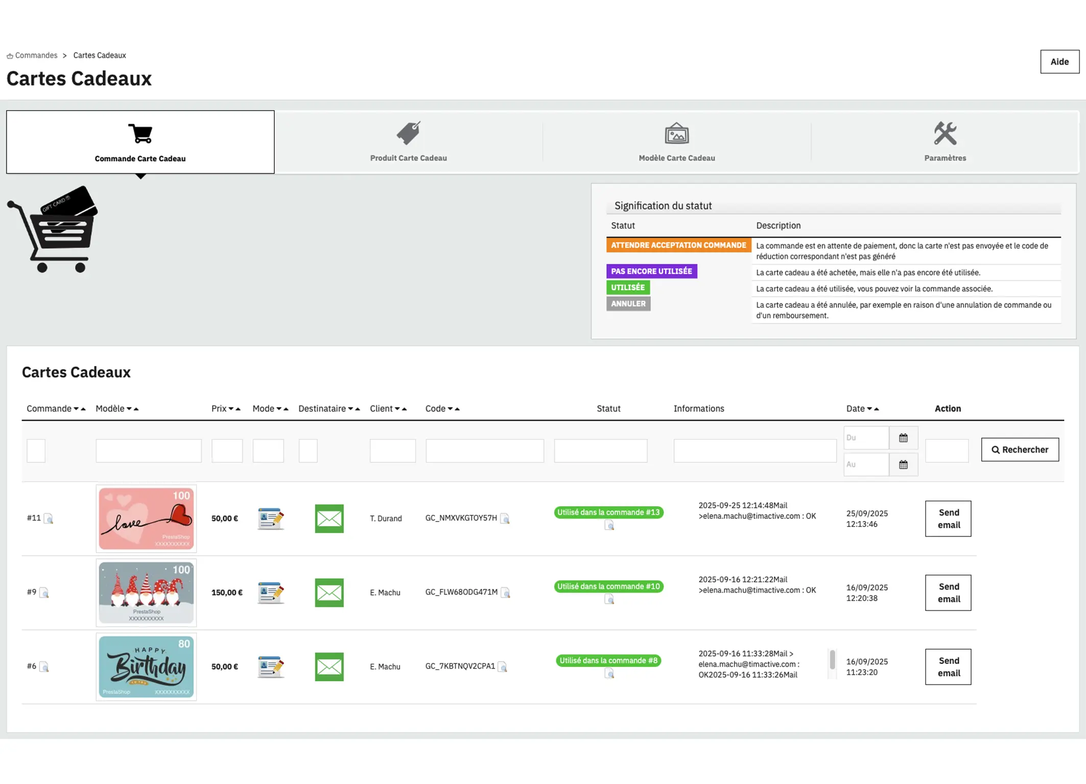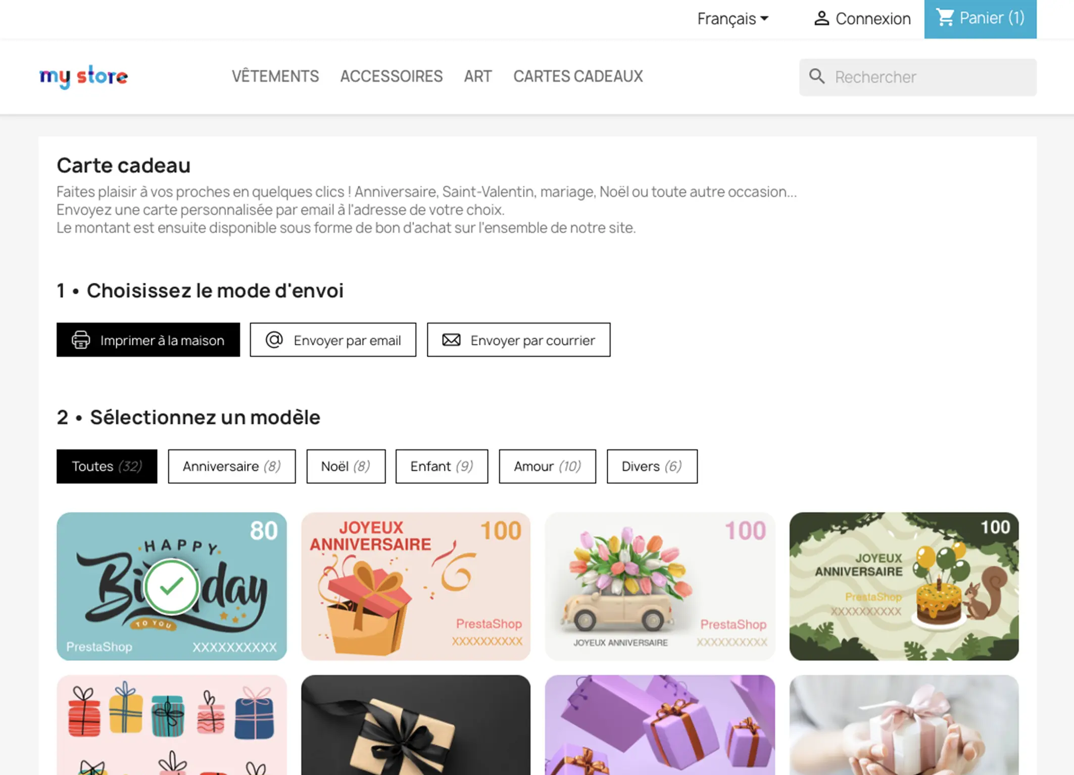 Pas toujours évident de choisir un cadeau pour une personne… Avec le module carte cadeau, offrez la possibilité à vos clients de créer une carte cadeau à offrir à leurs proches. Fini les recherches de cadeau interminables, laissez leur le choix et augmentez votre taux de conversion !