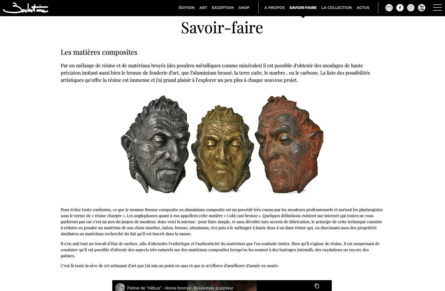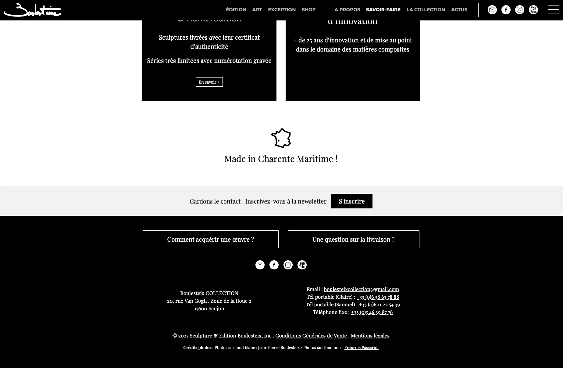 Ce projet a été porté par Mathieu, notre UX designer, qui a mené une refonte complète du site Boulesteix. Le design a été réalisé sur Adobe XD par Fabien Barral, un graphiste qui travaille avec Mathieu. Ce dernier l’a par la suite intégré en s’appuyant sur Joomla 3, Bootstrap 4, et le CCK Zoo. Le site présente les œuvres selon des catégories claires, avec des pages élégantes et immersives. Une interface de gestion en frontend a été développée sur mesure par Mathieu pour permettre à Samuel de publier facilement ses nouvelles sculptures, descriptions, photos et slides sans passer par le back-office technique.