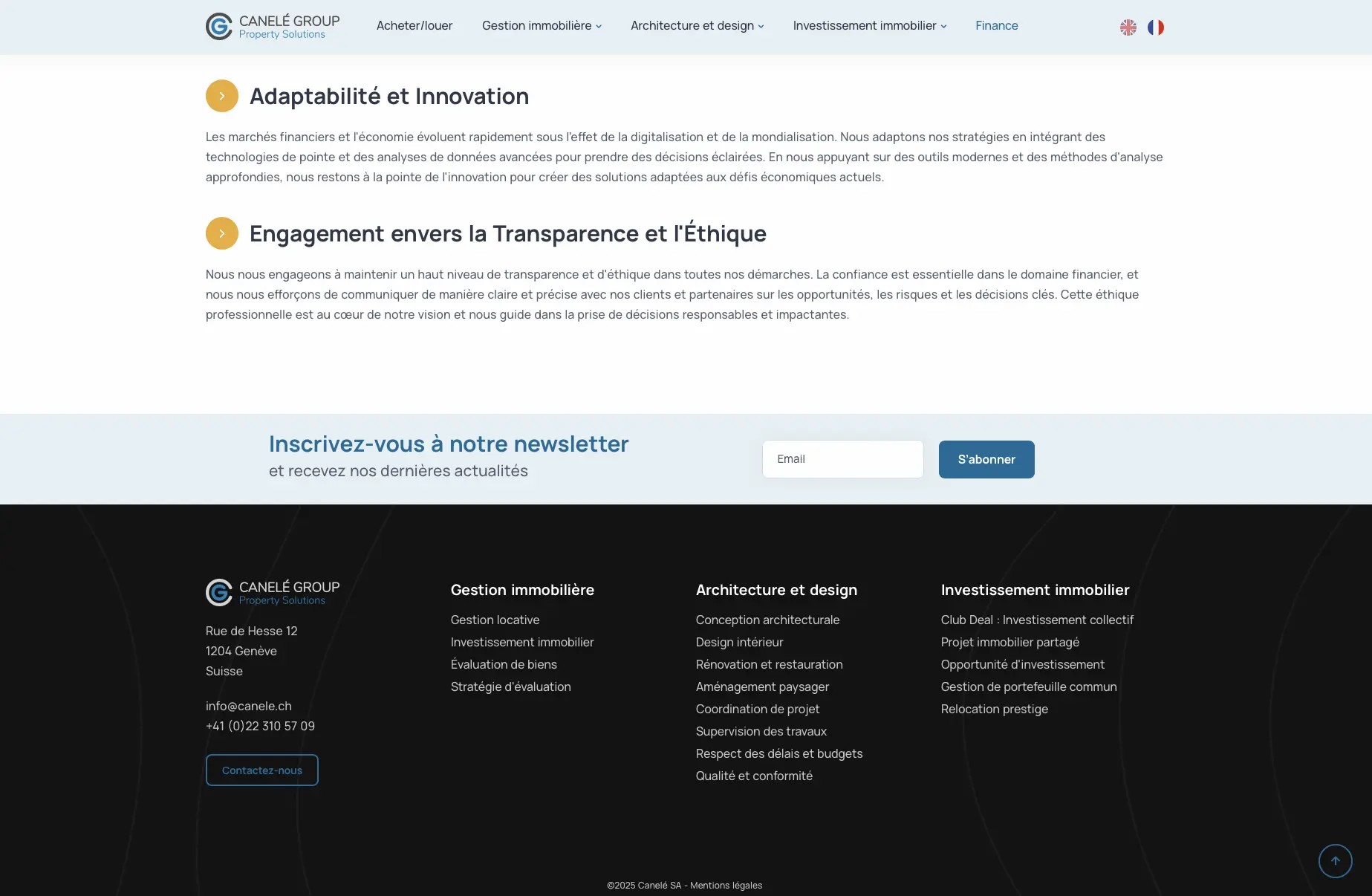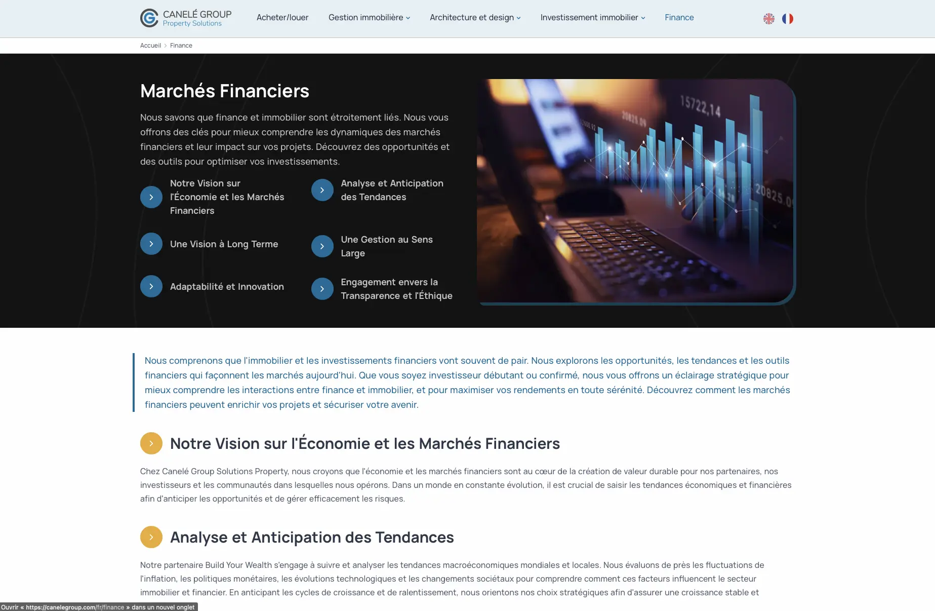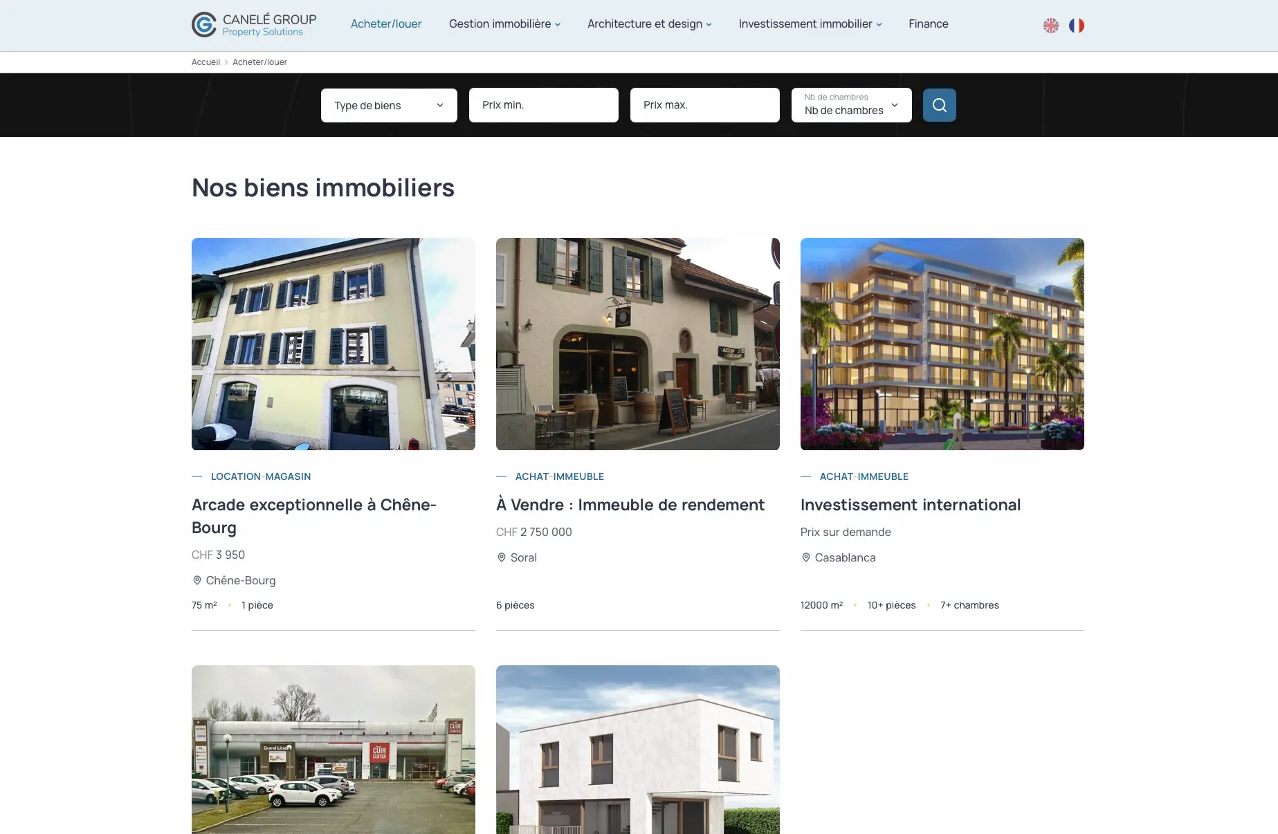 N’ayant encore aucun site internet, Canelé Group avait besoin d’un outil en ligne à la fois institutionnel et fonctionnel, combinant présentation corporate et diffusion d’annonces immobilières. L’objectif de l’entreprise était de mettre en valeur l’identité de sa marque, tout en permettant aux visiteurs de consulter des offres grâce à un système de recherche efficace.